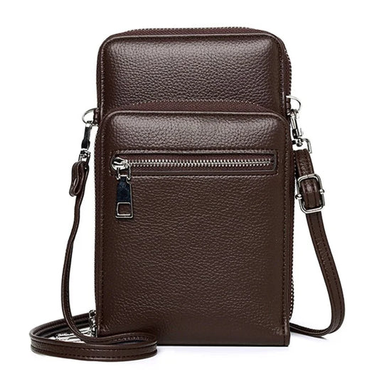 0016 First Layer Cowhide Women Crossbody Bag Phone Cards Holder Zipper Crossbody Bag