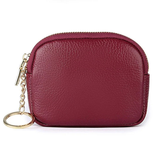 0021 Card Cash Storage Mini Wallet Top Layer Cowhide Leather Zipper Coin Purse with Keychain