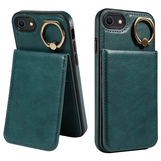 004 For iPhone 15 Case Card Holder Drop Proof PU Leather+TPU Phone Cover