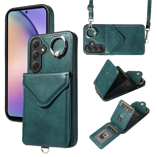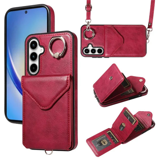005 For Samsung Galaxy S23 FE Case Card Holder Kickstand Phone Cover with Crossbody Strap