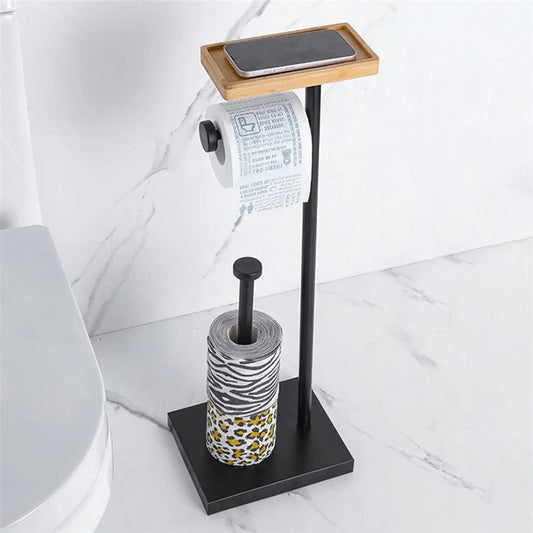 001-LDZJ01 Stainless Steel + Wood Dual Rod Bathroom Tissue Roll Holder Phone Storage Shelf