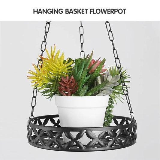 001-DL-01 Iron Hanging Flower Pot Indoor Outdoor Balcony Potted Plant Display Basket Hollow Out