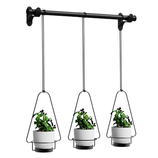 001- ZJ-YXH001 Set of 3 Hanging Flower Pot Wall-Mounted Gardening Plant Hangers with Extendable Rod