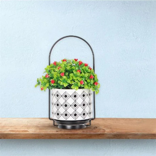 001- ZJ-TC001 3-in-1 Hanging Planter Basket with Ceramics Flower Pot and Telescopic Rod