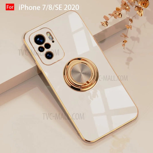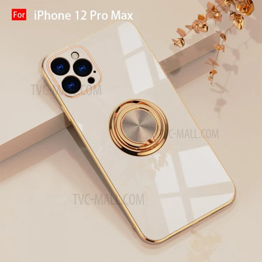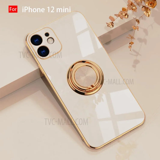 6D Electroplating Soft TPU Case with Metal Ring Kickstand for iPhone 12 mini/12/12 Pro/12 Pro Max