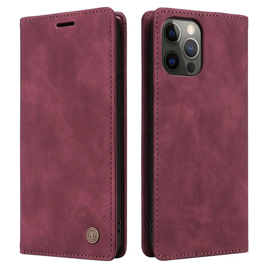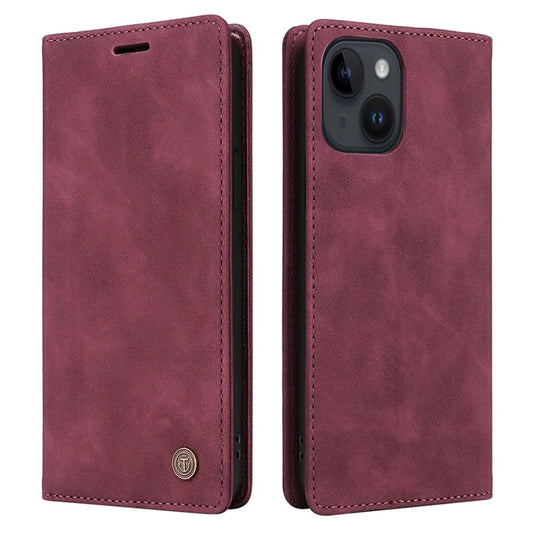006 Series For iPhone 14 Pro Case Leather Wallet Cover with Suction Cups Closure