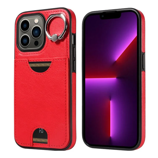 007 For iPhone 13 Pro Case Leather+TPU Phone Cover with Ring Holder Card Slots