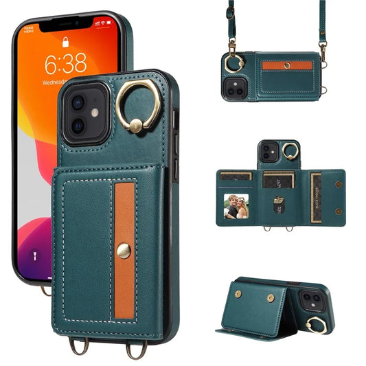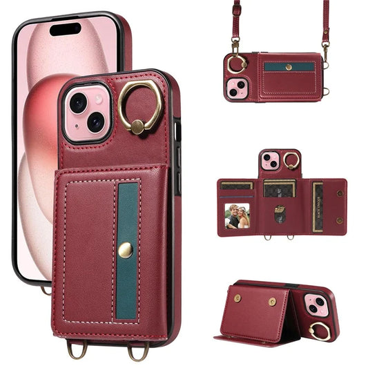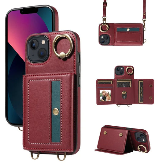 005 For iPhone 14 Pro Max Case Crossbody PU Leather+TPU Ring Kickstand Mobile Phone Cover