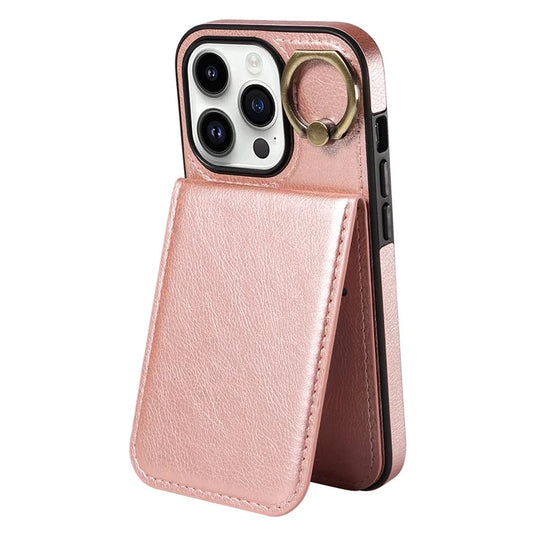 005 For iPhone 13 Pro Phone Case Card Holder Kickstand Cover with Finger Ring