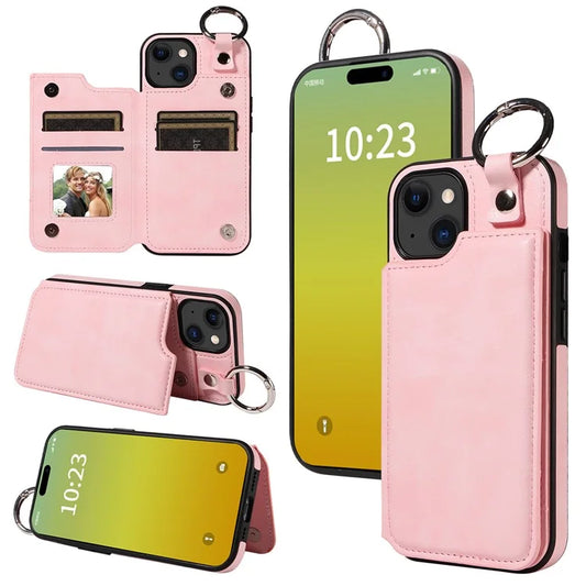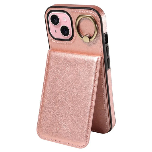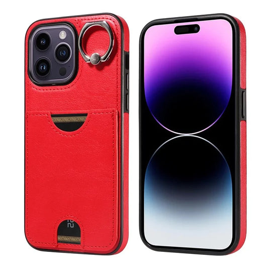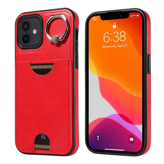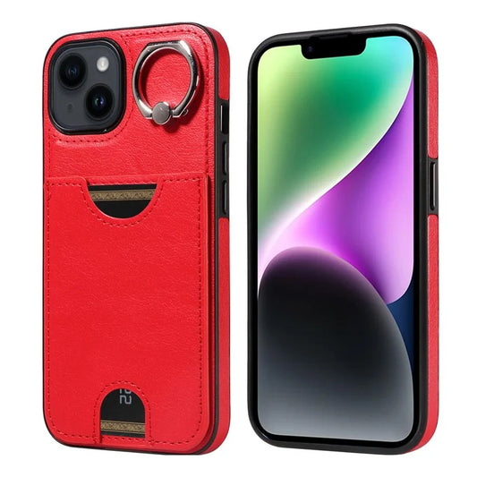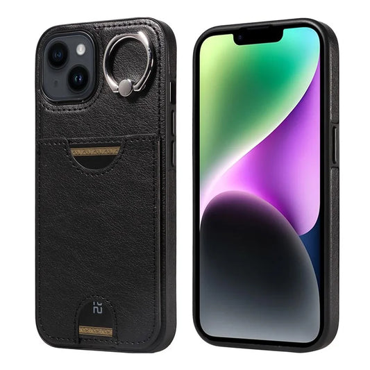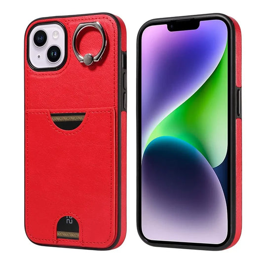 006 For iPhone 14 Case with Card Slot Ring Holder PU TPU Shockproof Back Cover