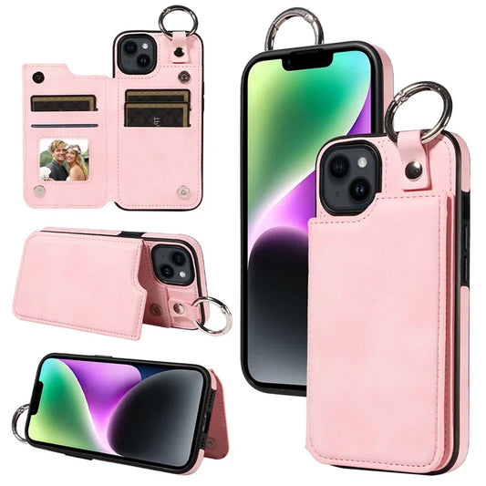005 For iPhone 14 Case with Card Holder PU Leather Phone Back Cover