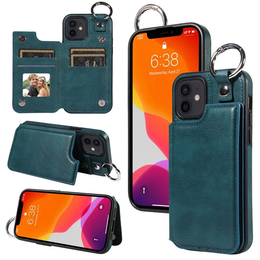 005 For iPhone 12 / 12 Pro Phone Case Card Holder Protective Crossbody Cover