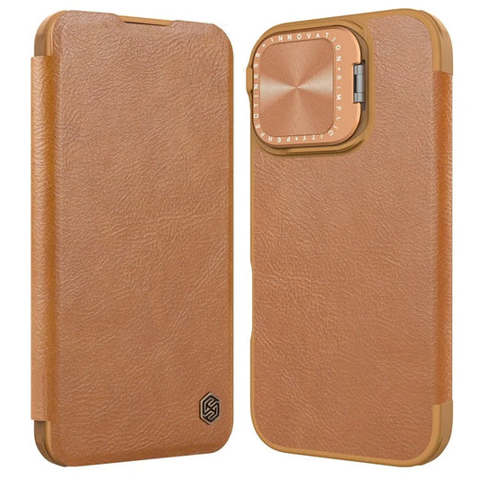 NILLKIN Qin Prop Series for iPhone 16 Leather Case Lens Kickstand Phone Cover
