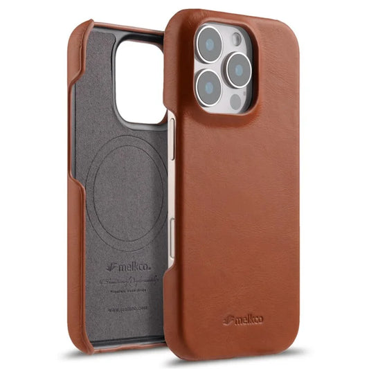 MELKCO For iPhone 16 Pro Case Compatible with MagSafe Waxy Genuine Cow Leather PC Phone Back Cover