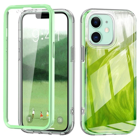 For iPhone 11 Feather Pattern Case Gradient PC+TPU Protective Phone Cover with Screen Protector