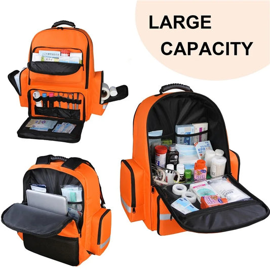 Reflective First Aid Backpack Rescue Medical Shoulder Bag for Camping Hiking, 31x19x46cm