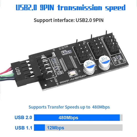 YNS-02 Motherboard USB 2.0 9-pin to 3x 9-pin Adapter Extension Cable Card