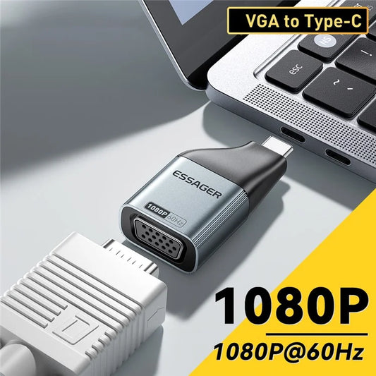 ESSAGER VGA to Type-C HD Video Adapter Aluminum Alloy Converter for Monitor HDTV Projector