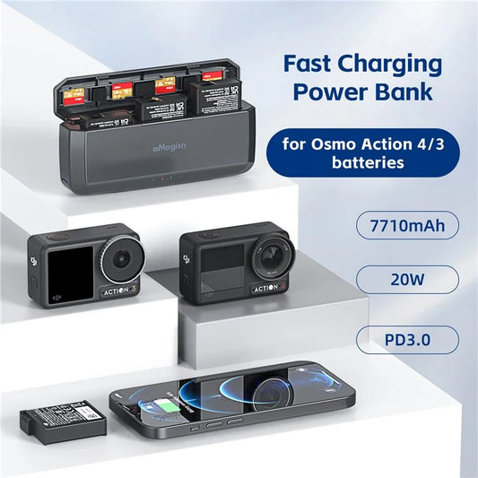 AMAGISN 7710mAh Fast Charging Power Bank for DJI Osmo Action 4 / 3 Action Camera Accessories