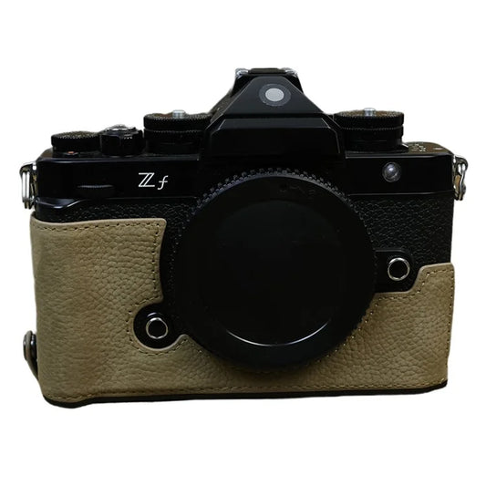 For Nikon Z f Genuine Cow Leather Protective Bottom Case Half Camera Cover with Battery Opening