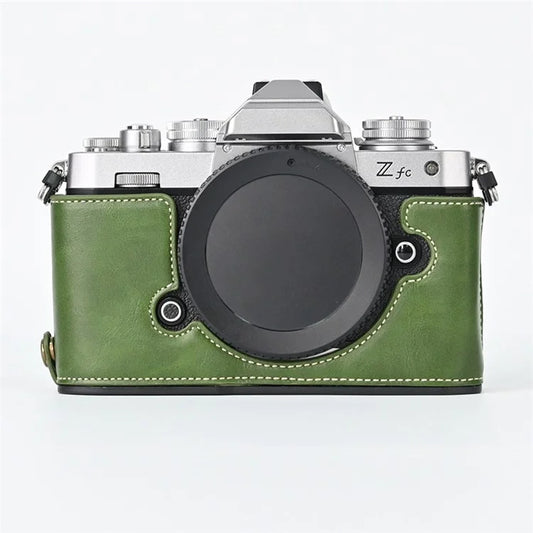 For Nikon Z fc Camera Bag Bottom Case PU Leather Protective Half Body Cover with Battery Opening