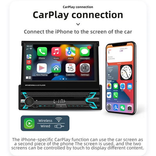 9613W 7-inch Car MP5 Player Wired / Wireless CarPlay Android Auto Video Display