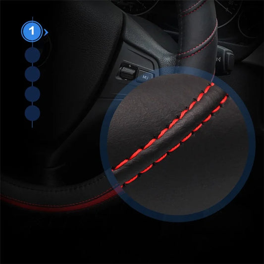 38cm D-shape Car Steering Wheel Cover Imitation Leather Anti-skid Steering Wheel Sleeve+Blue Line