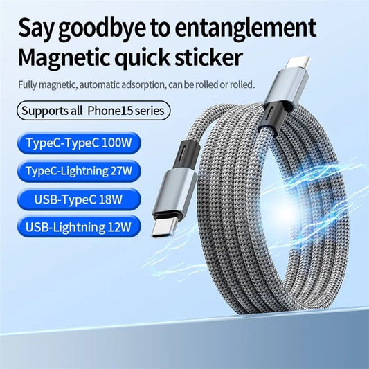 1.5m Type-C to Type-C PD 100W Fast Charging Cable Magnetic Phone Data Cord