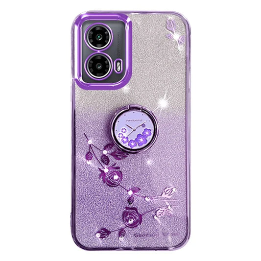 KADEM For Motorola Moto G34 5G Phone Cover Rhinestone Flower TPU Kickstand Case