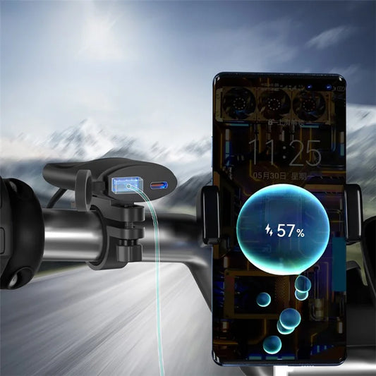 WUPP ZH-1927B1 Motorcycle Handlebar Phone Charger Ultra-Thin USB A+Type-C QC3.0 Charger