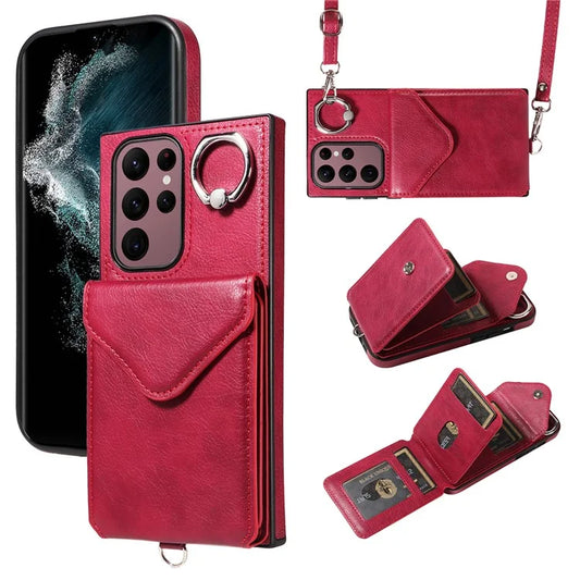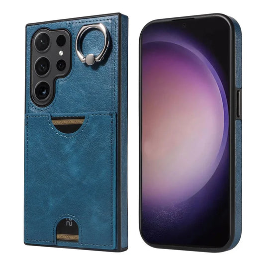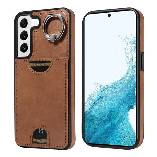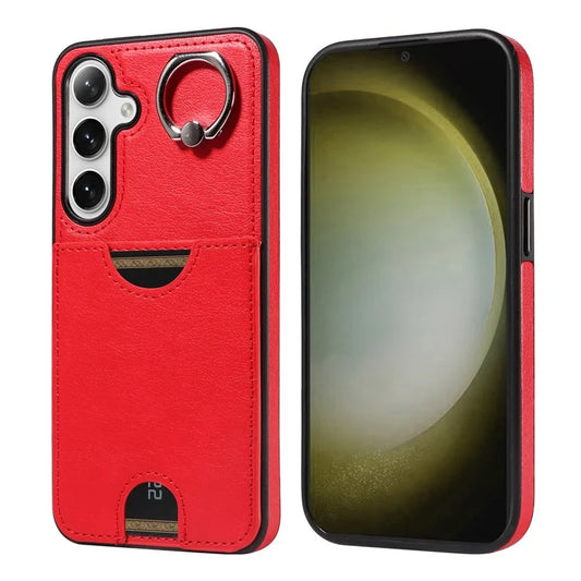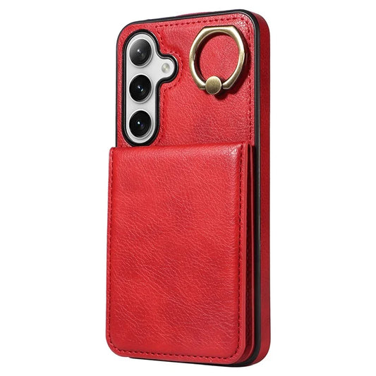 006 For Samsung Galaxy S24+ Case Card Bag PU TPU Back Cover with Ring Holder