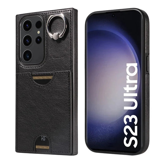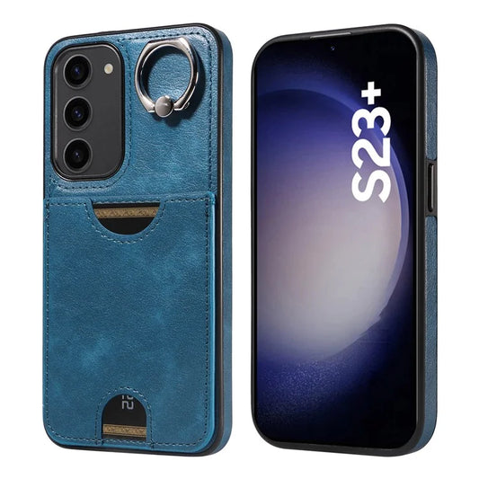 006 For Samsung Galaxy S23+ Case Ring Kickstand PU TPU Phone Cover with Card Slot