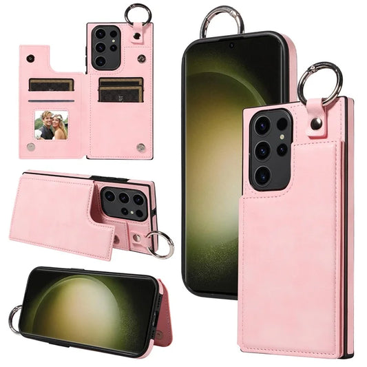 003 For Samsung Galaxy S23 Case Leather+TPU Card Holder Phone Protector Back Cover