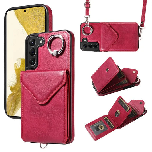 005 For Samsung Galaxy S22+ 5G Case Crossbody Litchi Texture Card Holder Kickstand Smartphone Cover