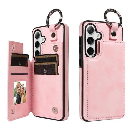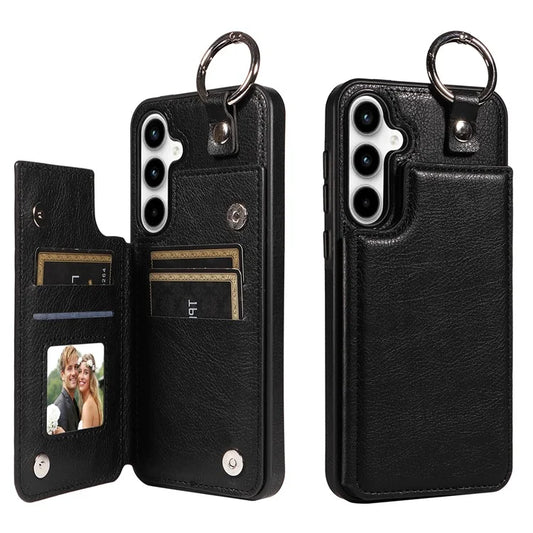 003 For Samsung Galaxy S24+ Magnetic Case Leather Litchi Texture Phone Shell with Hanging Ring