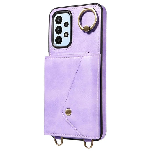 002 For Samsung Galaxy A35 5G Case Card Holder Leather Crossbody Back Cover Finger Ring Kickstand