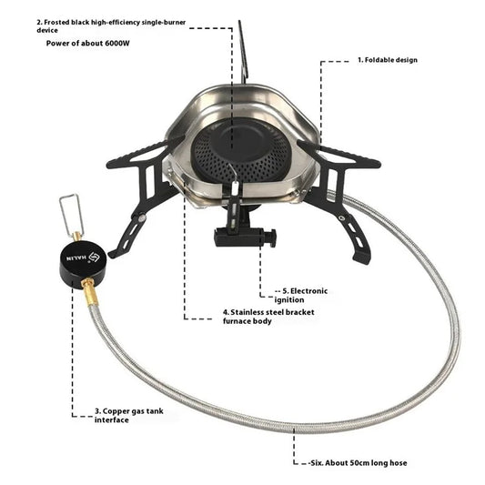 HALIN DS553 Outdoor Camping Windproof Blackened Stove Gas Burner with Gas Tank Adapter