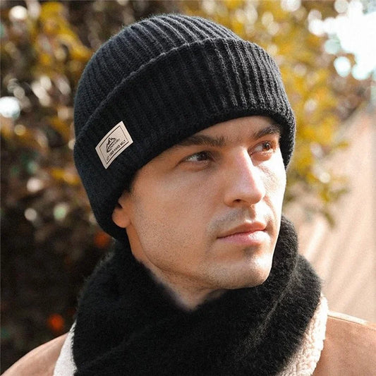 GOLOVEJOY DMZ81 Winter Combed Cotton Men Hat Elastic Knitted Warm Beanie Cap Face Mask - Black