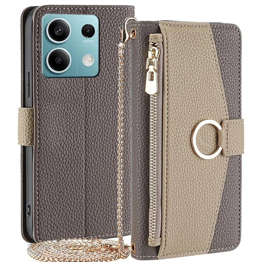 For Xiaomi Redmi Note 13 4G Case PU Leather Zipper Wallet Phone Cover with Makeup Mirror