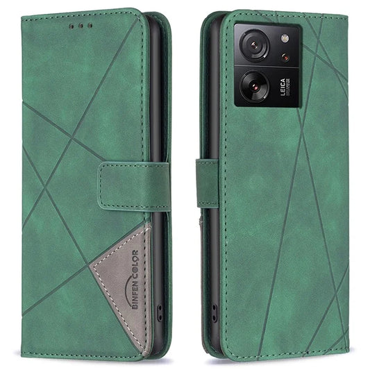 BINFEN COLOR BF05 For Xiaomi Redmi 13 4G / Poco M6 4G Leather Case Geometric Phone Cover