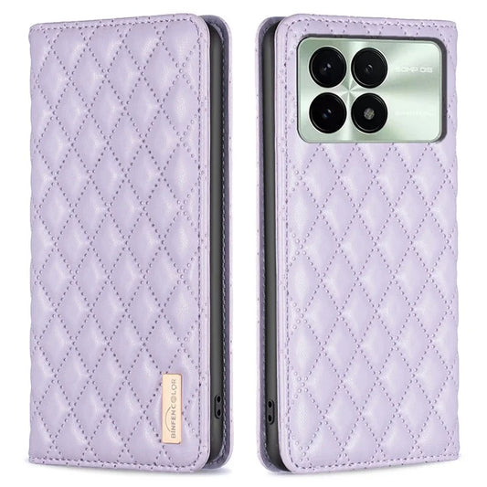 BINFEN COLOR BF Style-15 For Xiaomi Redmi Note 13 5G Zipper Leather Case Rhombus Handbag Phone Cover