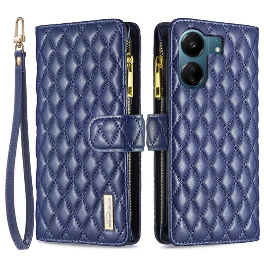 BINFEN COLOR BF Style-16 For Xiaomi Redmi Note 13 4G Leather Case Rhombus Pattern Phone Cover