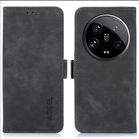 ABEEL For Xiaomi 14 Ultra Cell Phone Case Retro Leather+TPU Anti-scratch Flip Stand Cover