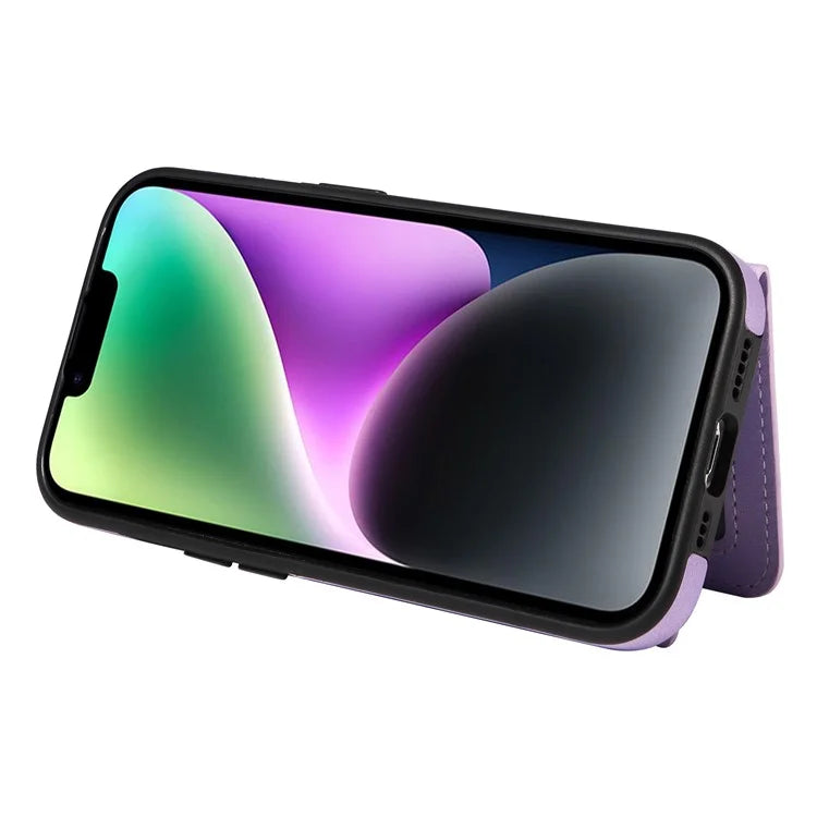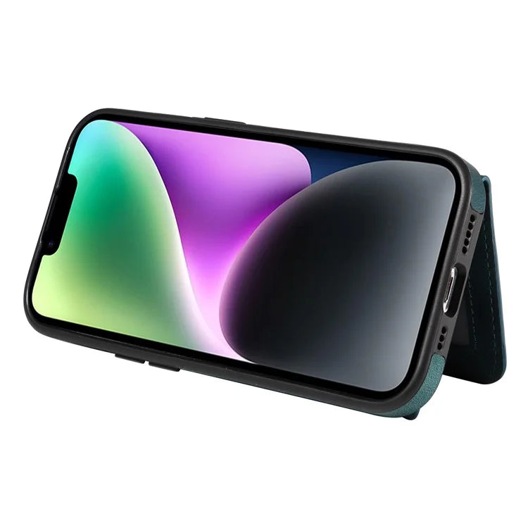 001 For iPhone 14 Case Card Holder Leather+TPU Ring Kickstand Shockproof Cover