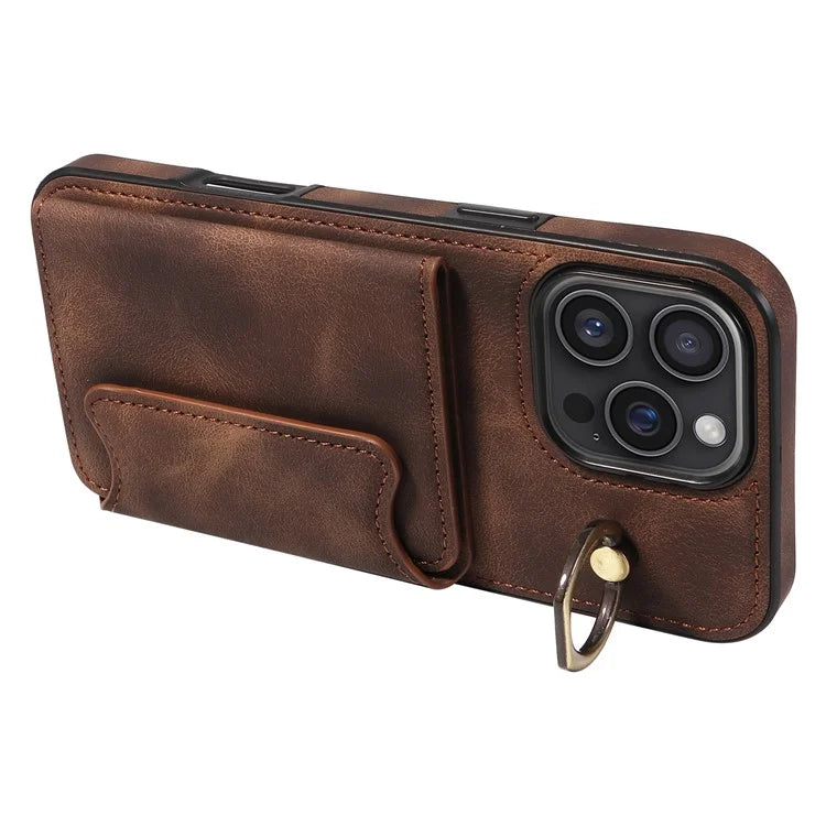 001 For iPhone 16 Pro Max Case Secure-Grip Kickstand Leather + TPU Phone Cover