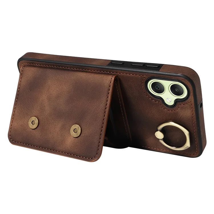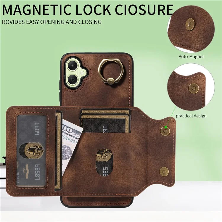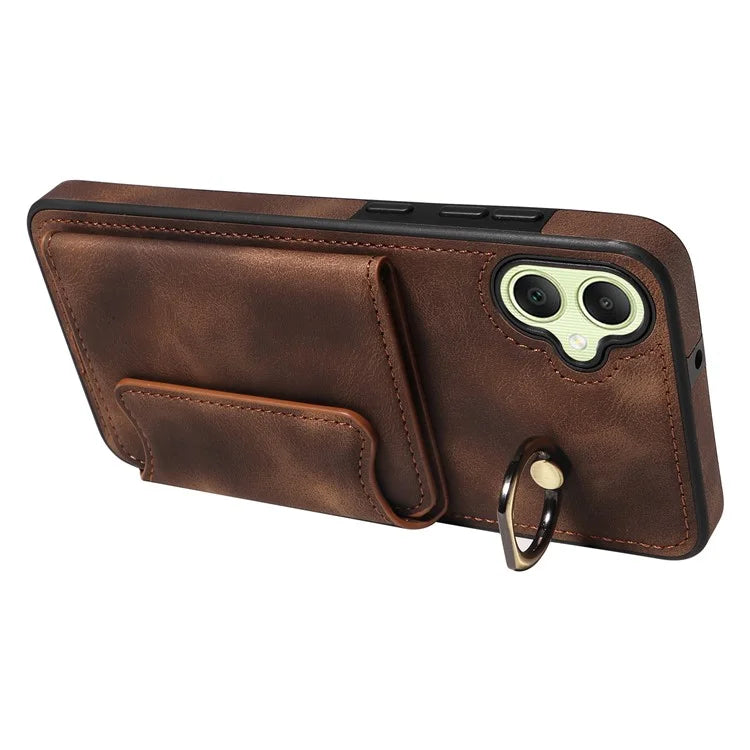 001 For Samsung Galaxy A05 4G Case Secure-Grip Kickstand Leather + TPU Phone Cover