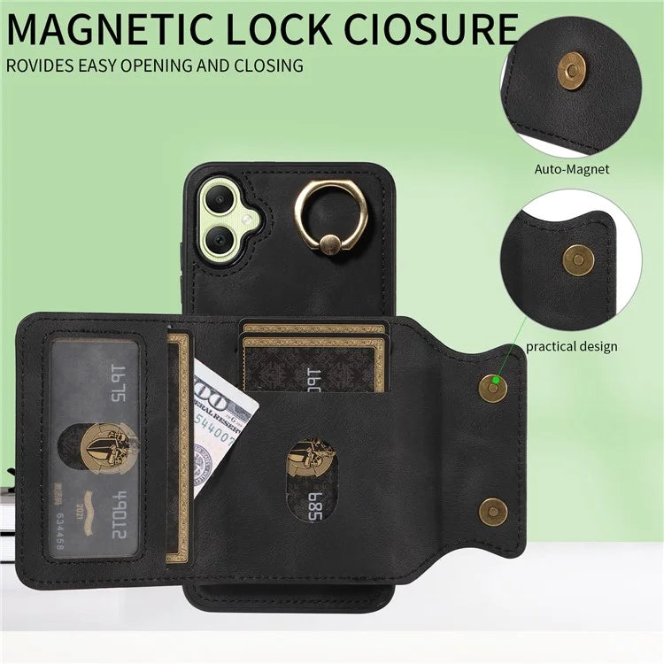 - Practical Card Slots: The case features multiple card slots, allowing you to carry your credit cards, cash, and IDs conveniently without needing a separate wallet. Magnetic lock closure to keep your cards and money safe. Built-in eject pin and SIM card slot (not included)