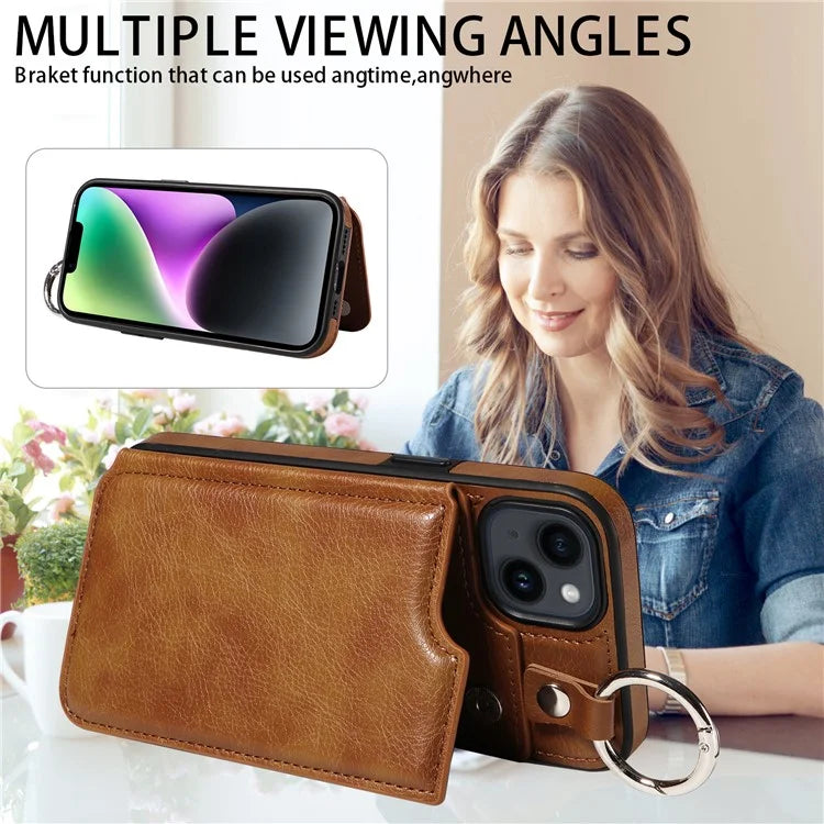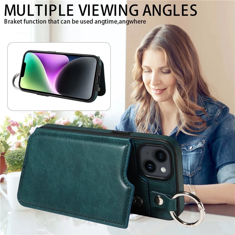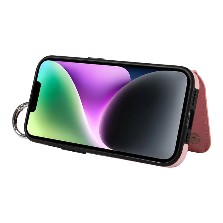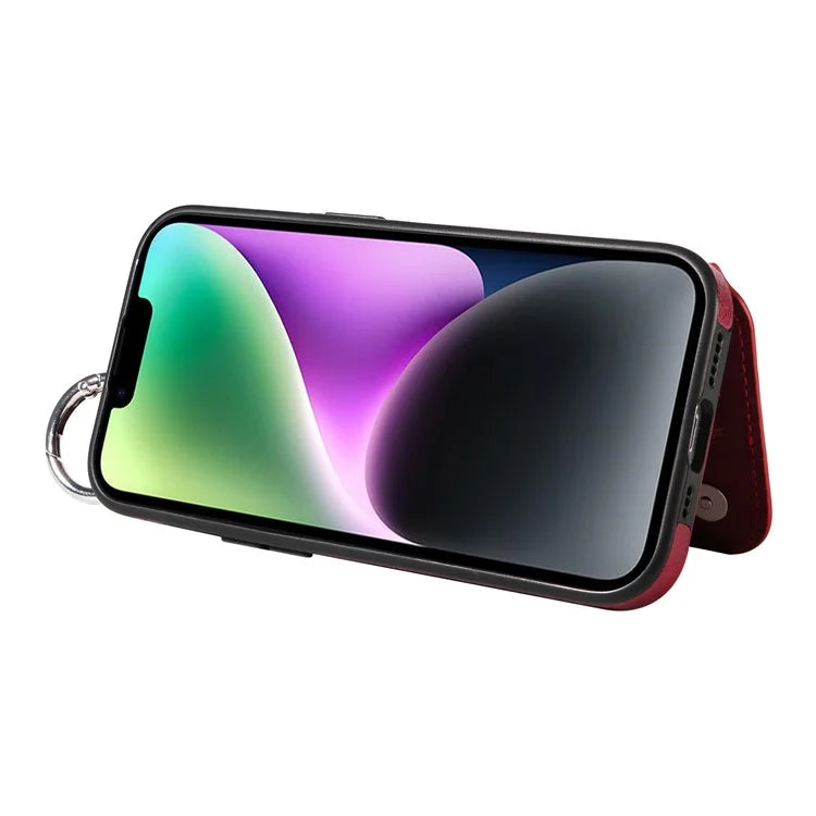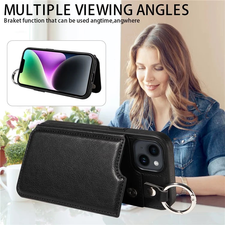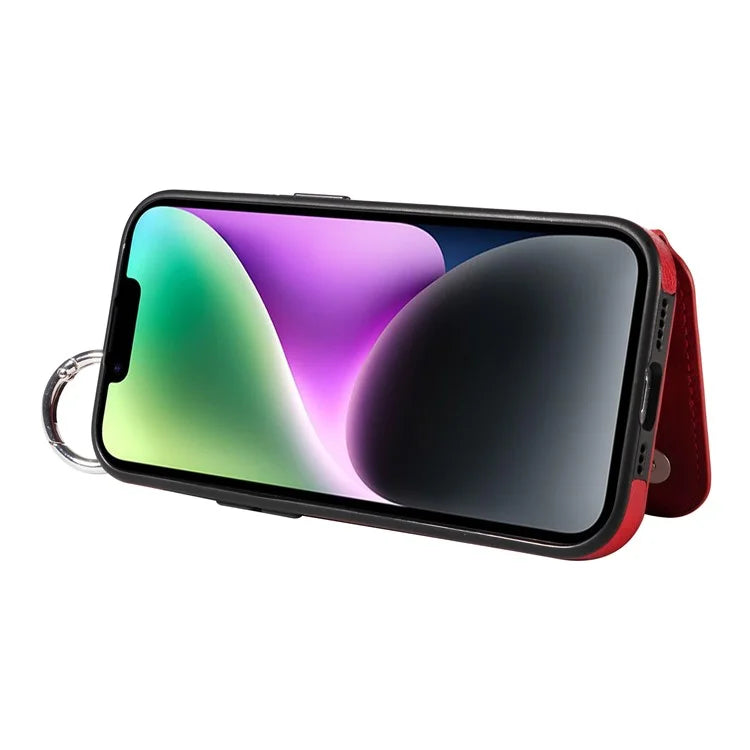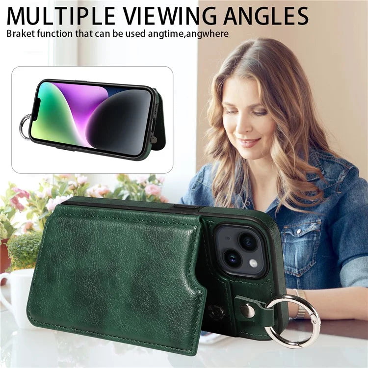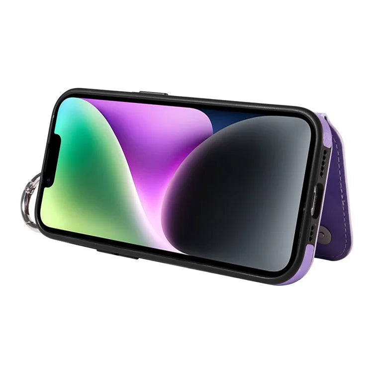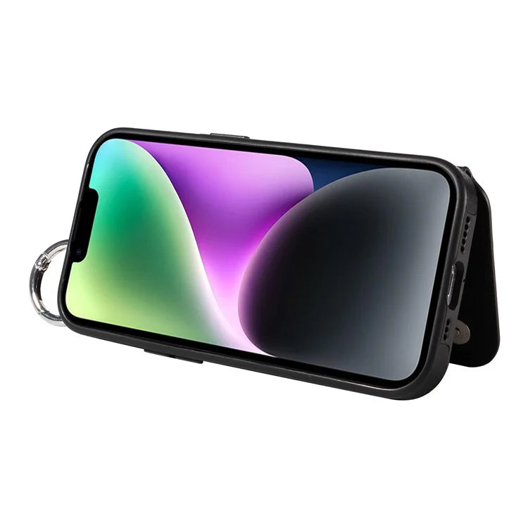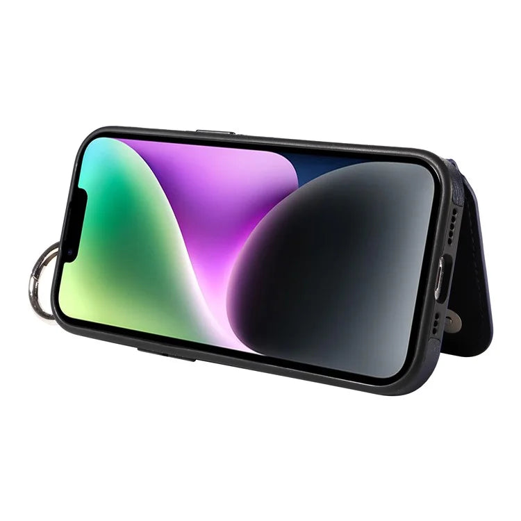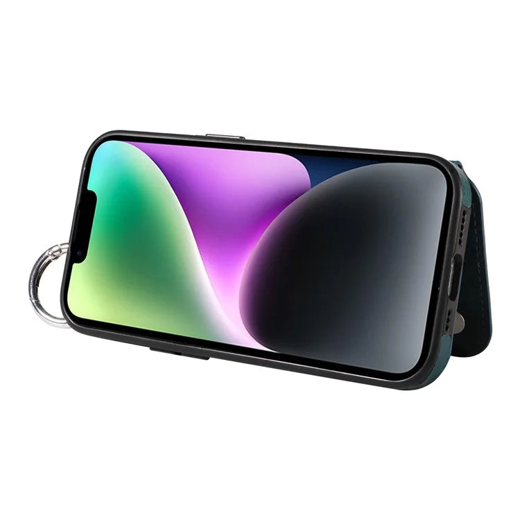 003 For iPhone 14 Case Anti-Drop Ring Buckle PU Leather + TPU Phone Cover Litchi Texture