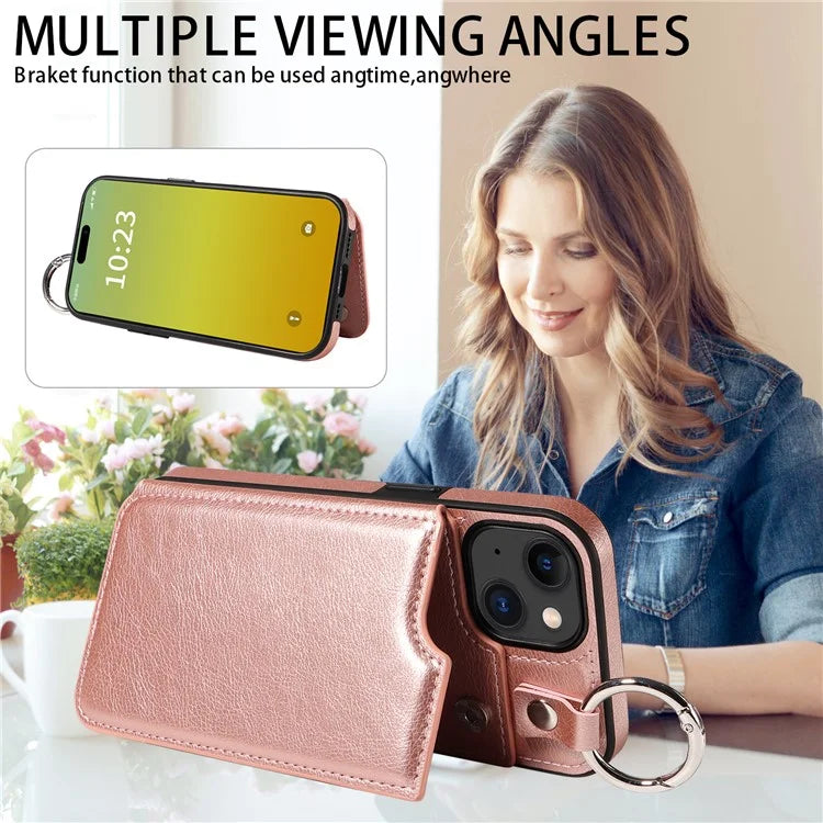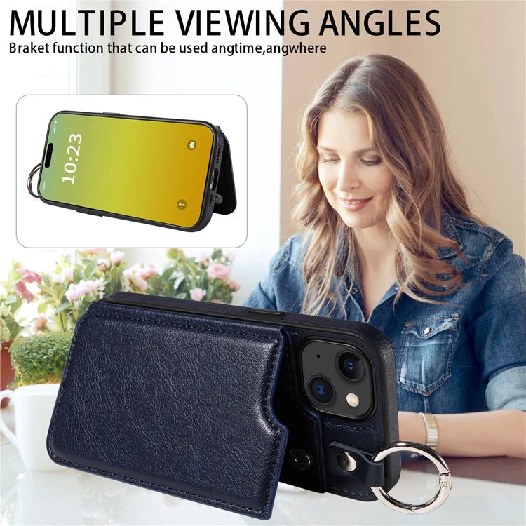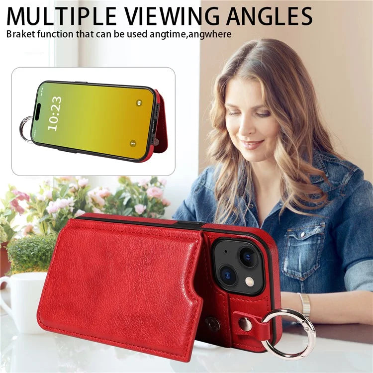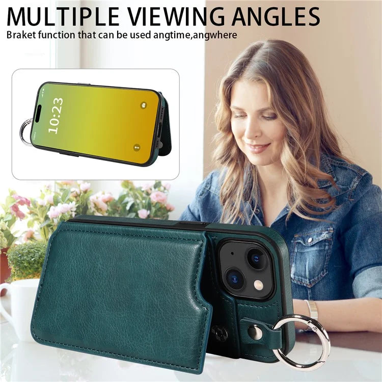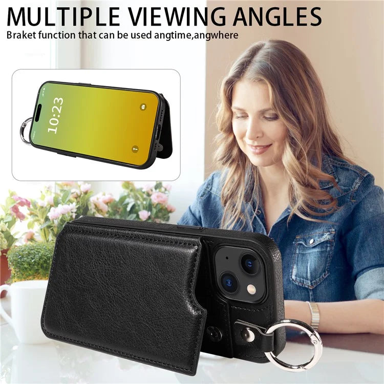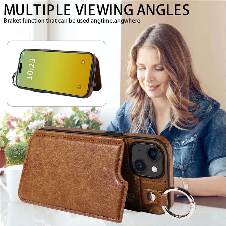 003 For iPhone 15 Case with Card Slots PU Leather Coated TPU Anti-Scratch Phone Cover