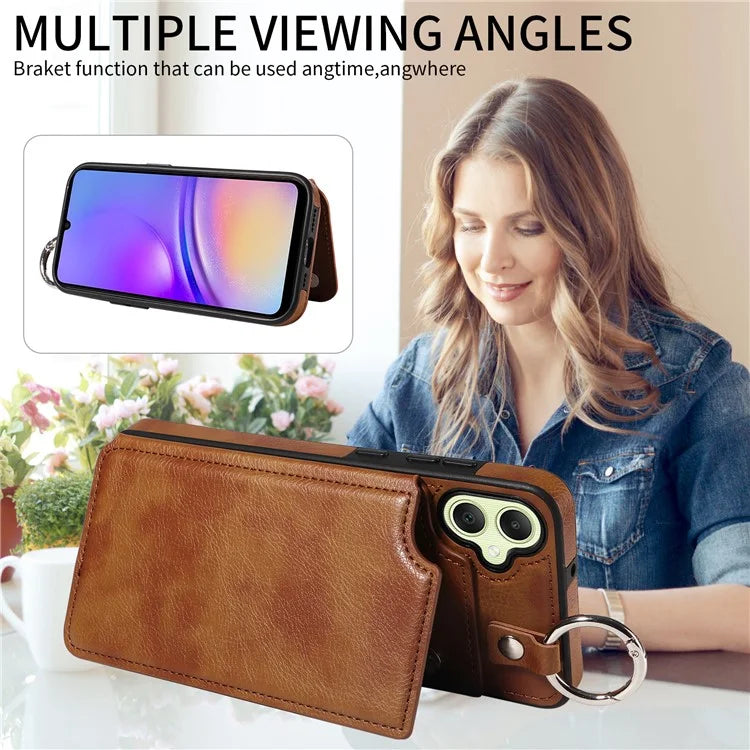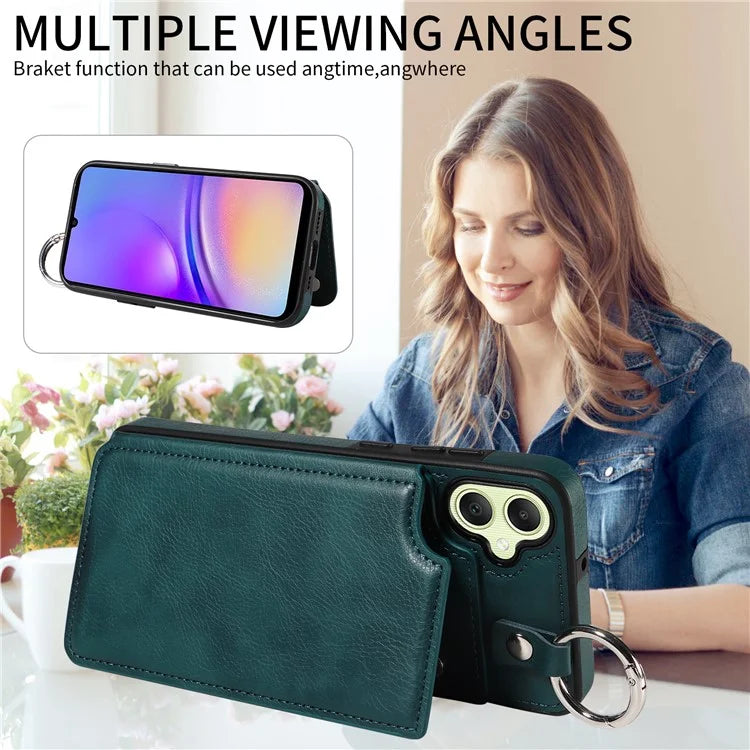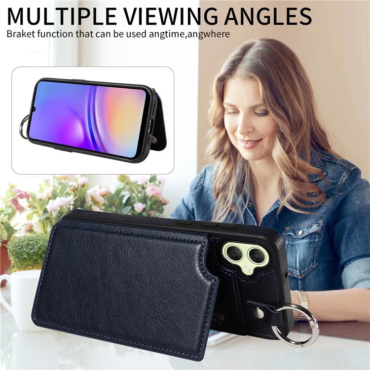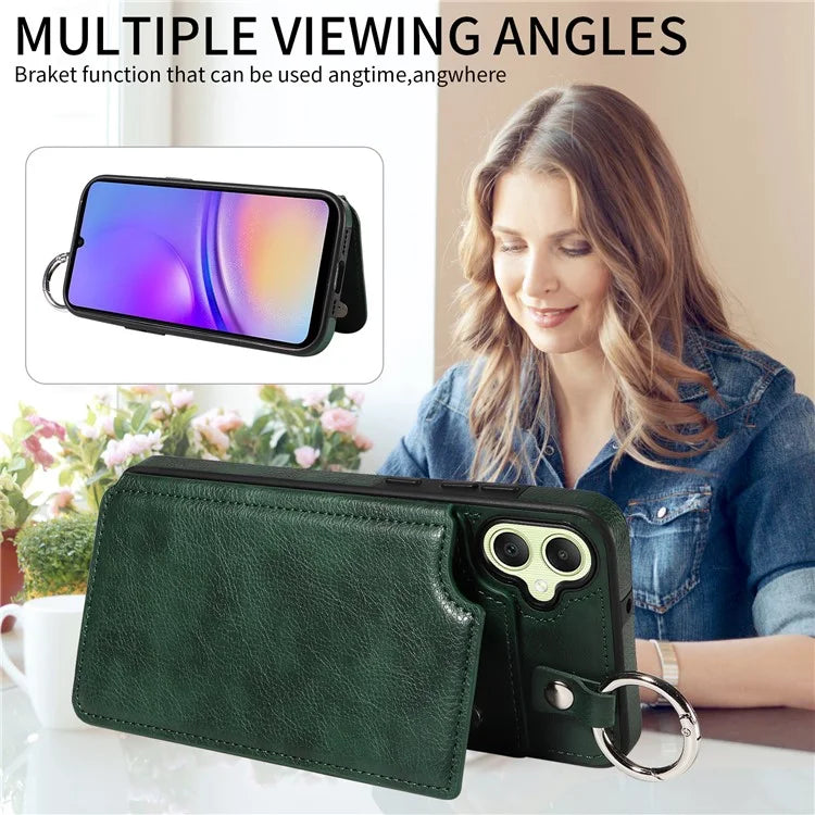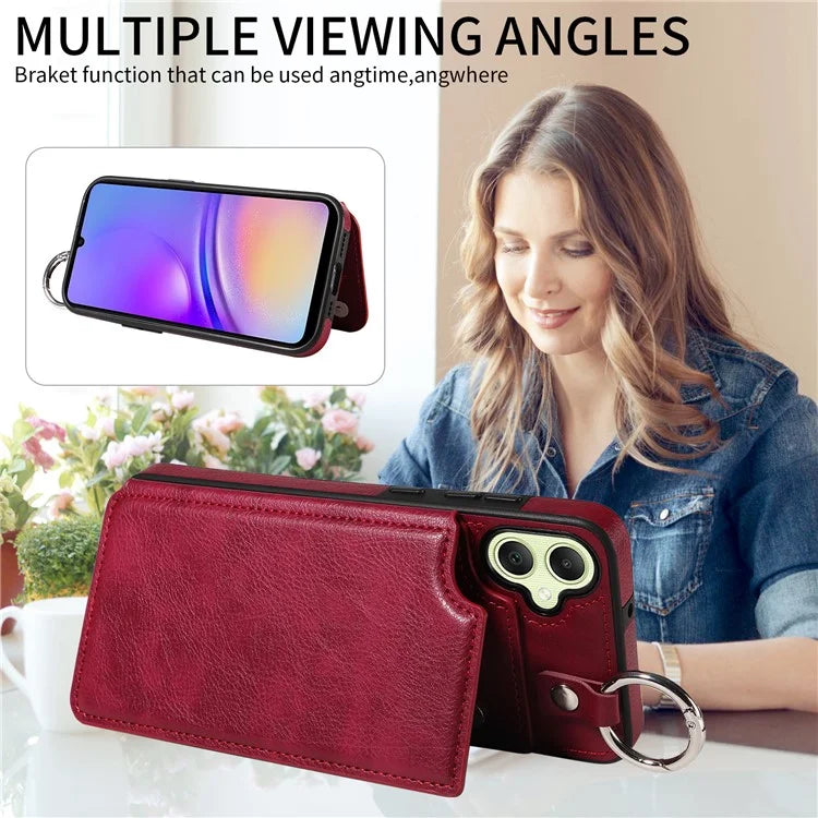 003 For Samsung Galaxy A05 4G Case Leather + TPU Kickstand Phone Cover Ring Buckle